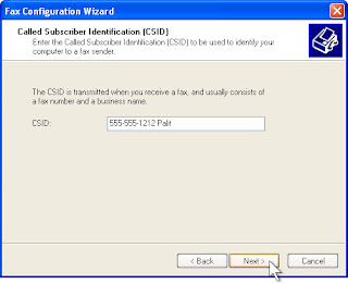 7,Type the "Called Subscriber Identification (CSID)" that you want in the "CSID" box. Note The CSID that you type is displayed on the fax machine where the fax originates from. This number helps you confirm that you are sending the fax to the correct recipient. then click "Next".